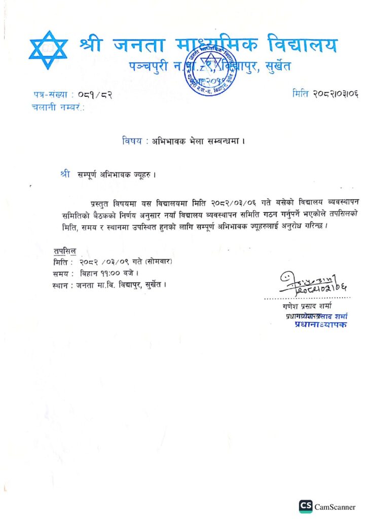 अभिभावक भेला सम्बन्धमा २०८२/०३/०९