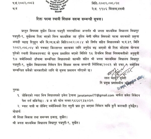 रिक्त पदमा स्थायी शिक्षक सरुवा सम्बन्धी सूचना